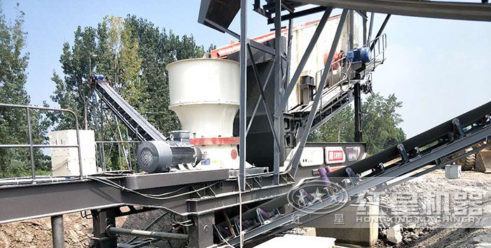 鵝卵石破碎現(xiàn)場,圓錐破碎機特別適合用來破碎卵石