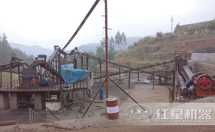 固定式鵝卵石粉碎作業(yè)現(xiàn)場,整體費用50萬左右