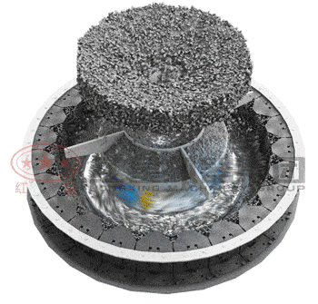 沖擊式破碎機在工作時,通過破碎腔內(nèi)葉輪的高速旋轉(zhuǎn)對經(jīng)由甩料盤甩出的物料進行充分的沖擊作用,受沖擊力的物料改變運動方向向破碎腔內(nèi)壁分散,撞擊在反擊板上實現(xiàn)二度破碎,在反擊板的阻擋作用下物料斜向下運動,在向下部運動中又與不斷被高速旋轉(zhuǎn)的葉輪擊打出的物料產(chǎn)生相互撞擊,實現(xiàn)物料之間的“自擊”破碎,在葉輪高速旋轉(zhuǎn)形成的渦動腔內(nèi)又與物料產(chǎn)生相互沖撞,逐漸破碎至需要粒度后由出料口排出。在沖擊式破碎機的整個破碎過程中,所破碎的物料不與破碎腔內(nèi)的設(shè)備機械零部件產(chǎn)生直接碰撞接觸,而是通過物料直接的相互沖擊作用力傳遞實現(xiàn)細碎生產(chǎn),因此,設(shè)備利用率高,物料受力充分,擊打程度上降低了設(shè)備消耗,生產(chǎn)過程節(jié)能高能,生產(chǎn)效率高。采用特別的自擊式原理進行不同質(zhì)量物料的破碎,是沖擊式破碎機實現(xiàn)節(jié)能生產(chǎn)的關(guān)鍵。