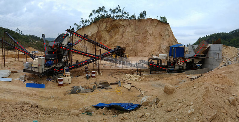 點擊圖片放大,左邊移動圓錐破碎站,右邊移動顎式破碎站,雙機協作工作現場